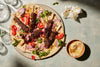 While cooking these on coal helps to bring a sense of smokiness to the sharp citrus taste, cooking the meat in a griddle pan on the hob will also work beautifully, as you’ll retain more of the juices. Serve with flatbread, hummus, raw onions, tomatoes, watercress or lettuce, fresh chilli and sliced oranges.