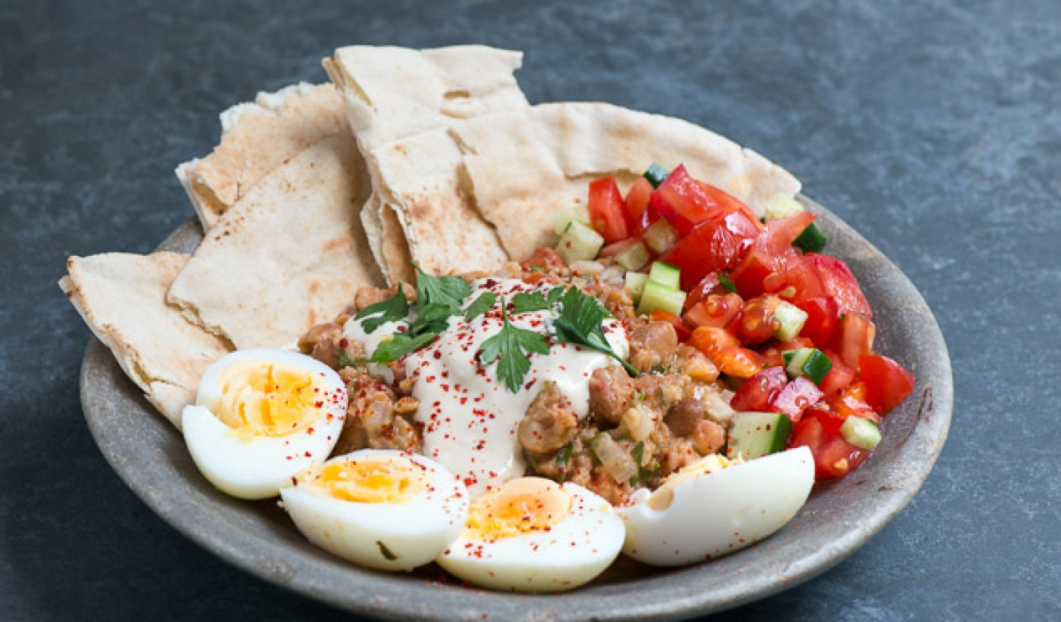 A trip to Cairo wouldn’t be complete without trying the ancient Egyptian breakfast staple, ful medames. To make the dish, the ‘fūl’ or beans are warmed and gently flavoured with cumin, onion, tomato, garlic and parsley. The richly flavoured beans are often accompanied by a colourful array of sides: smoky griddled flat breads, creamy tahini sauce with a lemony kick, hard boiled eggs for sustenance, and refreshing chopped tomato and cucumber salads.