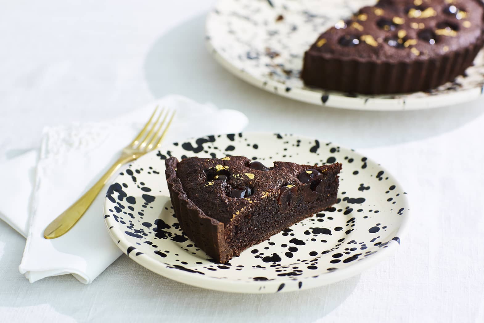 Chocolate and cherry are a match made in heaven - both tart and sweet this recipe is for those who love a decadent dessert. Topped with gold leaf, it looks and tastes like luxury. What's more, the syrup from the Fabbri cherries infuse the sweet filling enhancing the rich almond flavour.