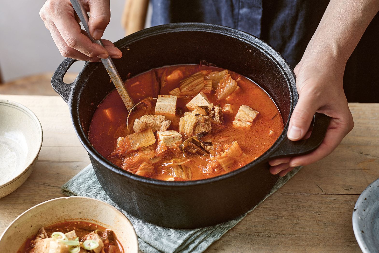 Kimchi jjigae should not be limp; instead it should have the vigour and tanginess that linger enough to make you salivate spoon after spoon. The final seasoning of the dish will greatly depend on the quality and ripeness of the kimchi you’re using. Try adding a touch of vinegar right at the end, to give the dish an uplifting sour note."