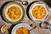 - Once it’s bubbling, add the potatoes. If your water looks red, add a dash of lemon – the turmeric needs acidity to stay yellow. Leave the potatoes to cook for 15–20 minutes, then add the chickpeas. The water should just cover the potatoes; you don’t want too much, as it will take a lot longer to thicken.