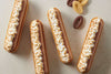 emulsion. - Once the mixture is at 35-40°C, combine with the cream which has been whipped until it has the texture of a mousse. Quickly pour the mixture into the oblong silicone moulds and freeze.