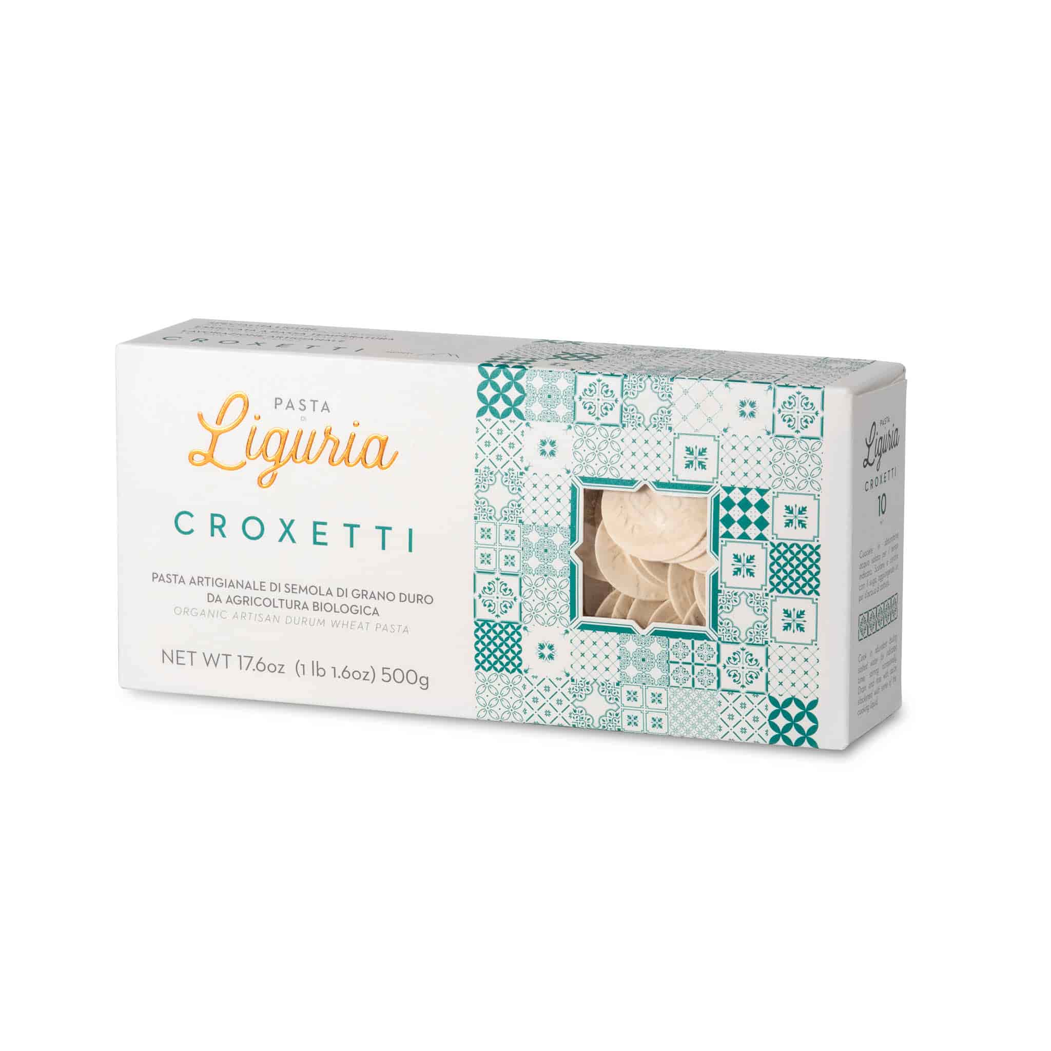 Corzetti, also known as croxetti, are round, flat discs of pasta with intricate patterns imprinted on them using a special wooden stamp. They are traditionally served with a simple olive oil and pine nut sauce or pesto.