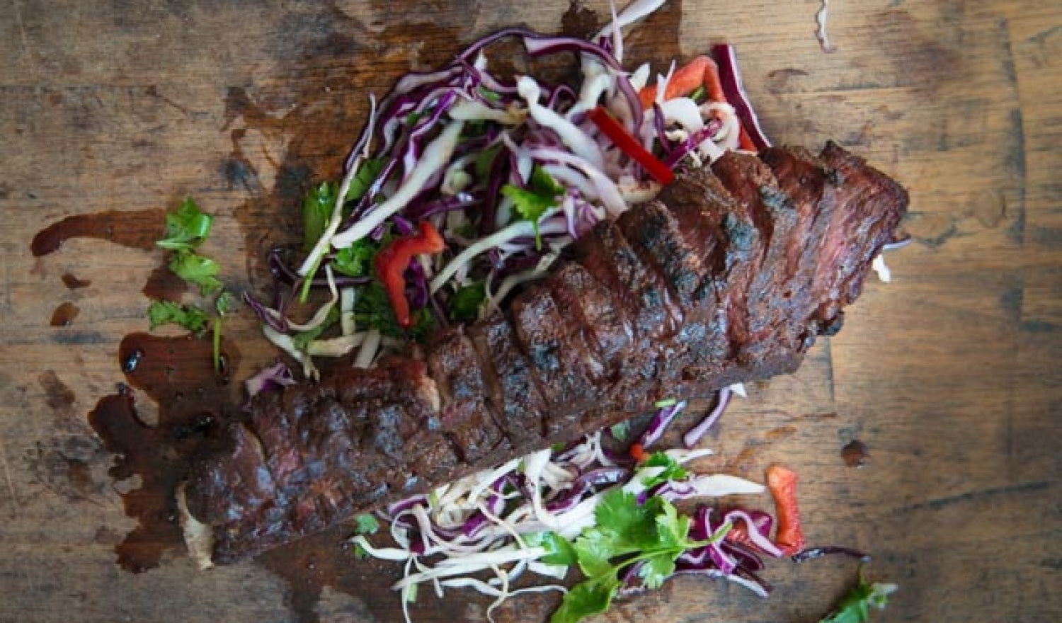 - Grill the ribs on all sides, turning every few minutes. Remove from the BBQ and - starting at one end - slice from the top of the meaty part of the rib, down to the bone. Repeat this cut every 5mm along the rib. Place back on the BBQ, bone side down. Leave for another 5-10 minutes, depending on the heat of the BBQ. The searingly hot bone gently cooks the beef through.