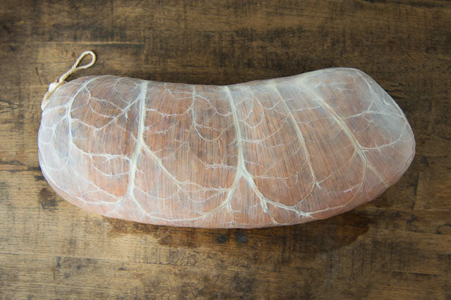 When the haggis is the size required, expel any extra air (again making sure there is a little extra casing), pinch, tie with string, and cut away from the rest of the bung.
