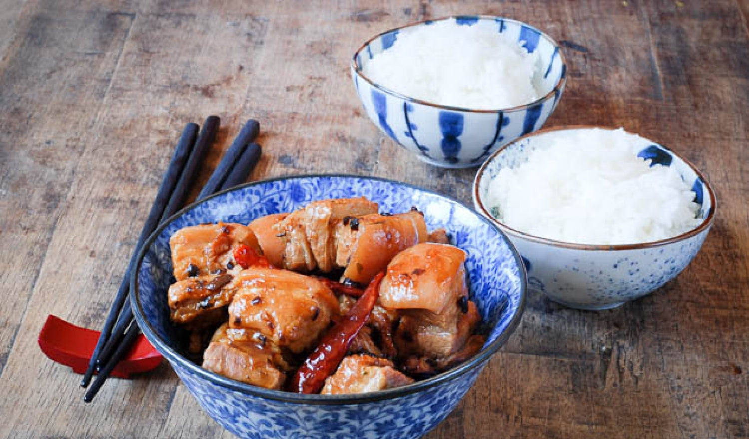 This classic eastern Chinese dish is an example of red braising. Many recipes say that the pork only needs to simmer in the juices for forty minutes, but the longer it has to absorb the tasty juices, the better. The result is a wonderfully sticky sauce, with a jelly-like layer of savoury, succulent fat. Serve as a single dish as part of a Chinese banquet, or just with a bowl of steamed rice for a complete meal.