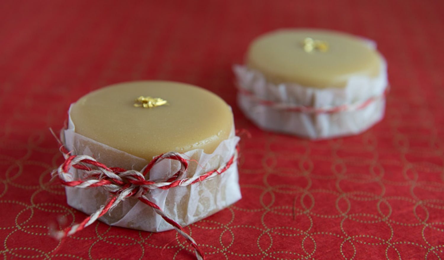 - Optional: If you're giving the cakes as presents, run a usual eating knife around the side of the cake, and lever it out. Place upside down on a circle of greaseproof paper, tie with string, and top with a little gold leaf.