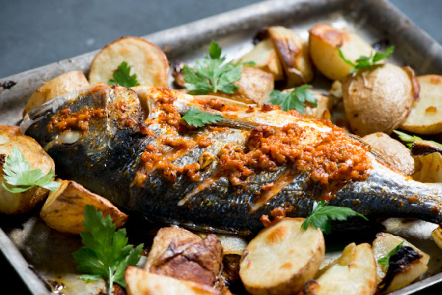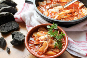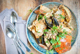 These fish recipes include some familiar ideas, along with a few unusual recipes to excite the adventurous chef. Try our white fish recipes for cod in Vizcaina sauce, and sea bass with tamarind and chilli, or have a go at the dark and dramatic squid ink paella and squid ink soda bread. From homemade prawn crackers, to Cambodian Kampot crab and salmon tartare: these seafood recipes are a riot of colour, flavour and techniques.