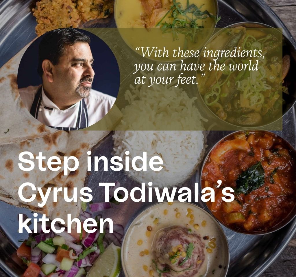 These are the Sous Chef ingredients Cyrus keeps in his storecupboard. Born in Bombay, chef Cyrus Todiwala developed his hallmark
