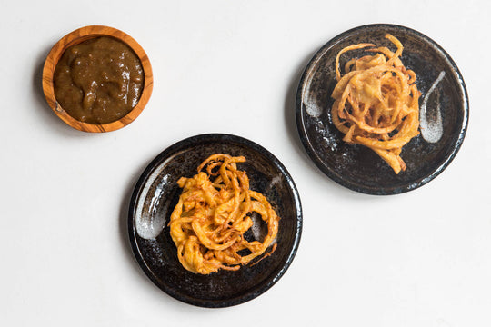 "Karasuba-iro" means glossy black in Japanese, and these glazed ceramic plates have a beautiful glossy black and grey speckled surface.