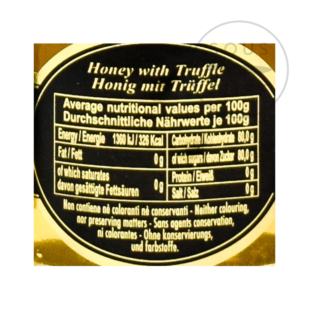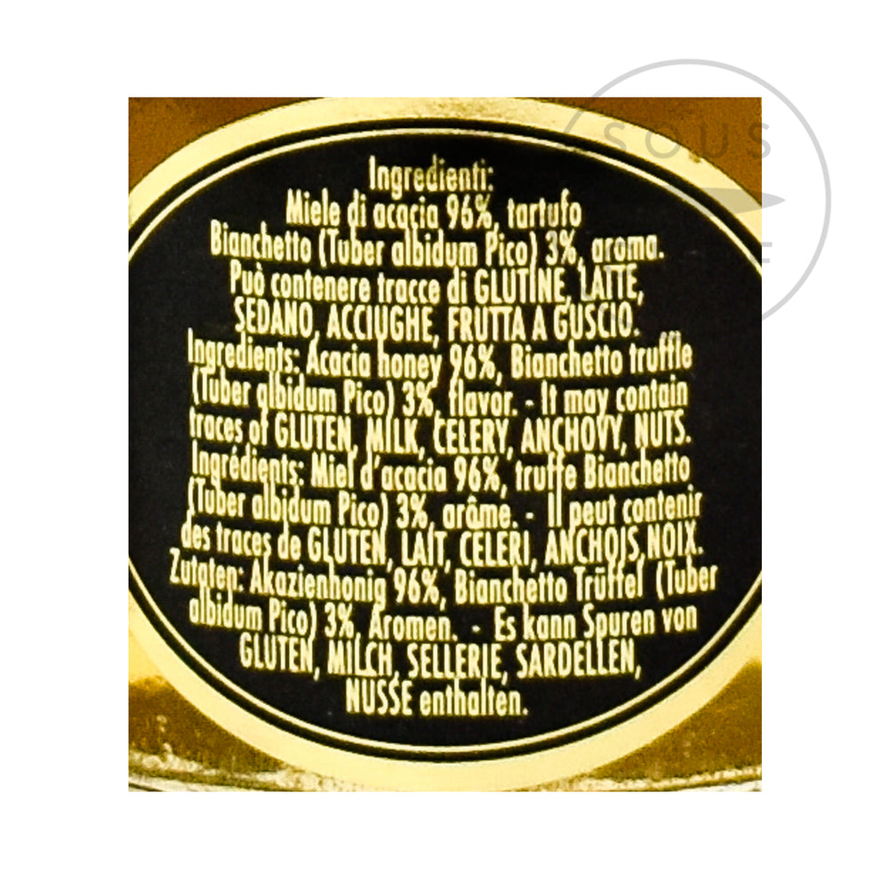 Product formulations and details may change. For the latest ingredients and allergen information always check product packaging prior to consumption. Ingredients: Acacia honey, bianchetto truffle (tuber albidum pico) 1%, flavour. May contain traces of gluten, milk, celery, fish, nuts.