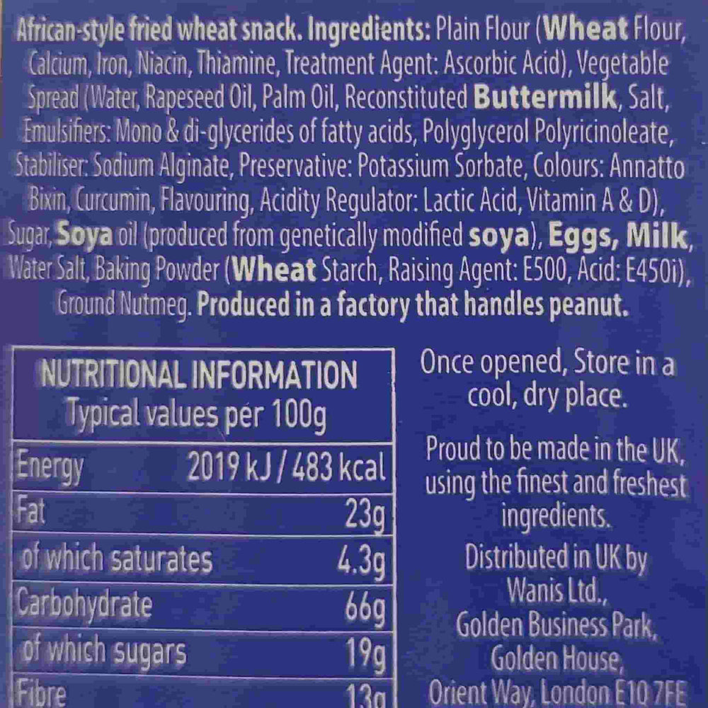 Africa Finest’s original chin chin is a crunchy fried West African snack. The wheat flour nuggets are fried, then seasoned with sugar and salt. The fried pastries were originally served at special occasions but have since become a popular street food snack.