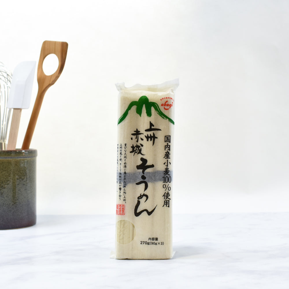 Akagi dried somen noodles are extremely quick to cook fine noodles, best enjoyed cold with a bonito-based dipping sauce. Or if you prefer, just use the somen noodles like an instant noodle and simmer in stock with mushrooms and very finely sliced meat or vegetables.