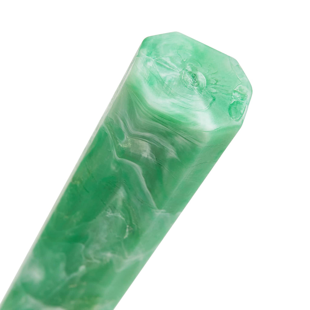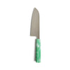 The handle is made from waste plastic from Maldon sea salt containers. The octagonal shape and mint green colour make it a beautiful addition to your table. No two handles are the same, so each knife has its own unique pattern.