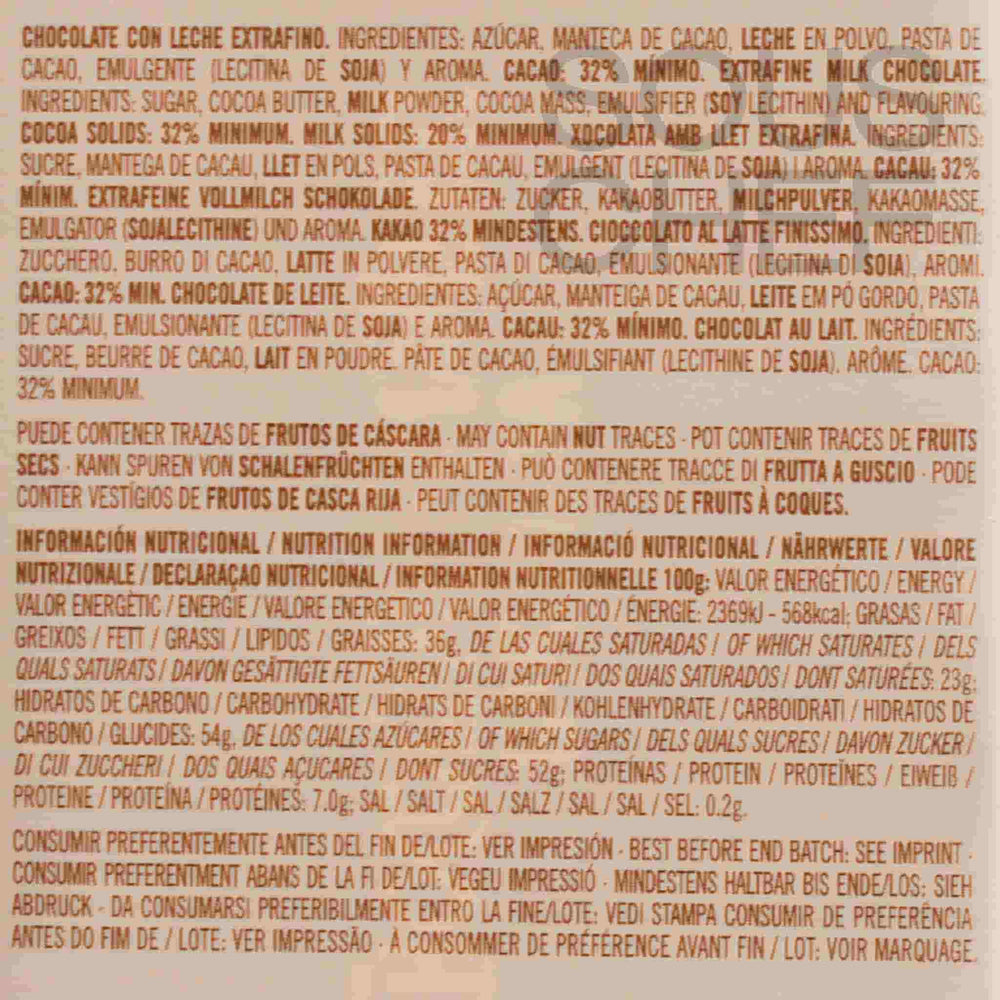 Product formulations and details may change. For the latest ingredients and allergen information always check product packaging prior to consumption. Ingredients: Sugar, cocoa butter, milk powder, cocoa mass, emulsifier (soya lecthin) & flavouring, cocoa solids: 32% minimum. milk solids: 20% minimum.