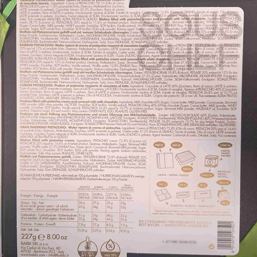 Babbi La Collezione Pistachio Chocolate Covered Wafer & Praline Selection, 227g