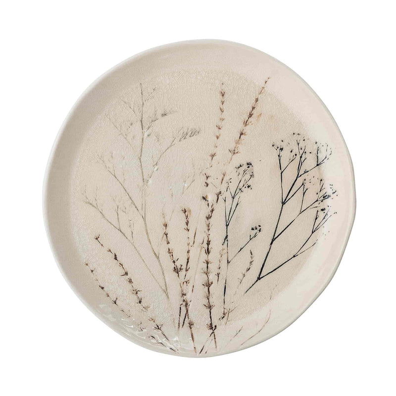 Serve comforting suppers on this elegant stoneware plate. It’s decorated with a crackle glaze and hand-printed floral motif.