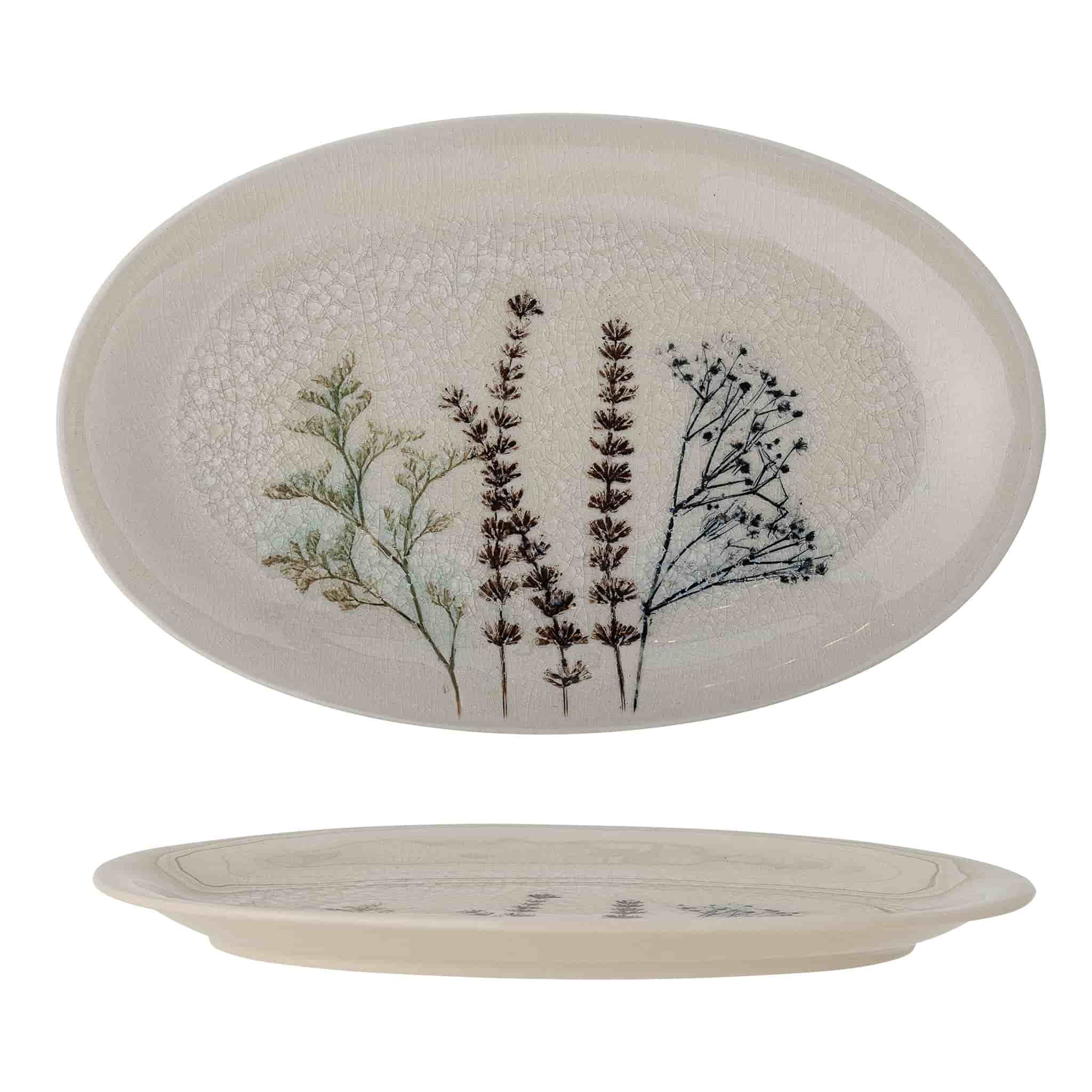 The oval plate is decorated with a hand-stamped floral motif. It’s perfect for entertaining, especially if you’re dining outdoors.