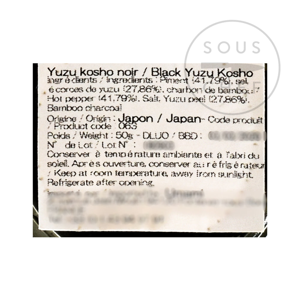 Product formulations and details may change. For the latest ingredients and allergen information always check product packaging prior to consumption. Ingredients: chilli pepper (41.79%), salt, yuzu skin (27.86%), bamboo charcoal.