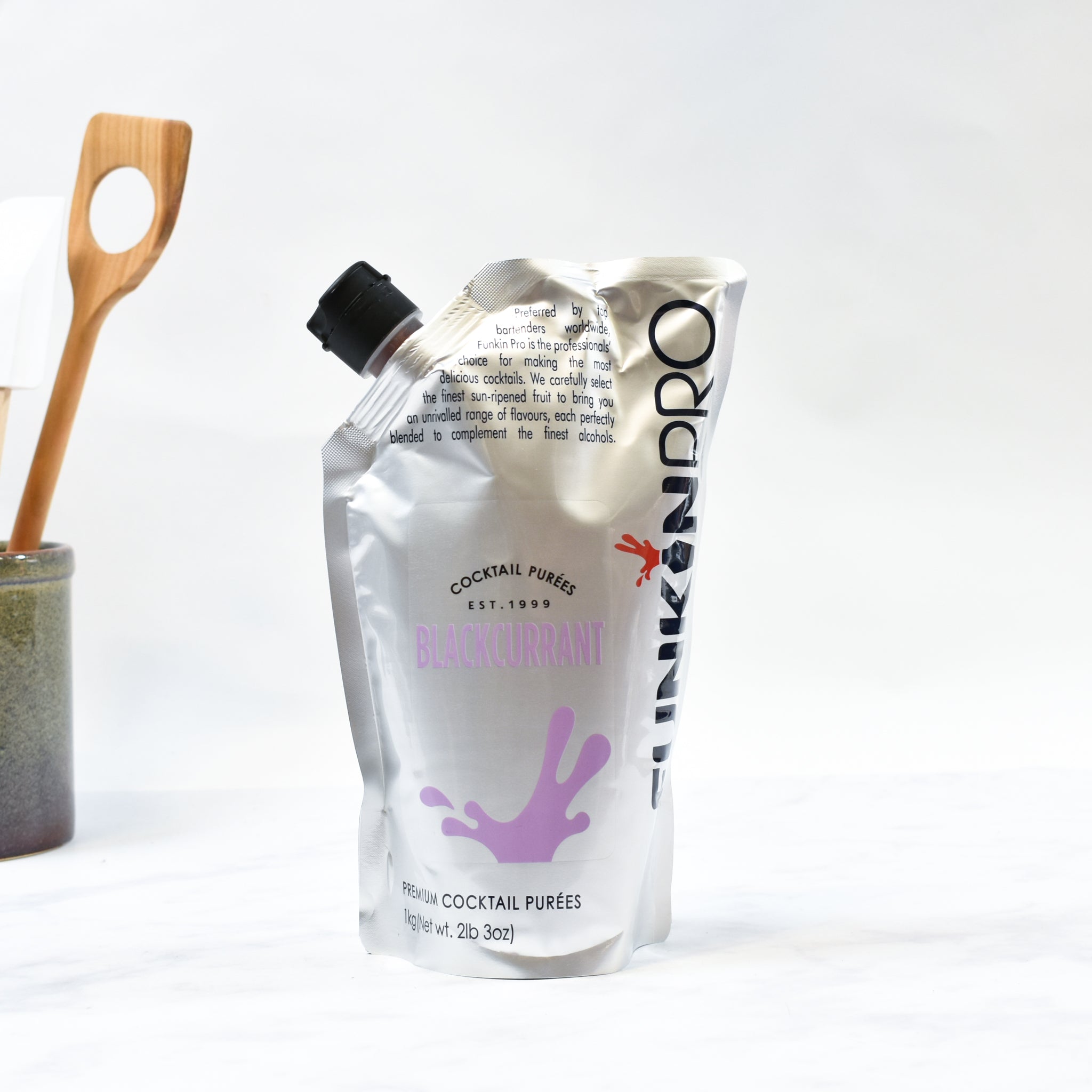 Funkin purees contain only the best fruit from around the world - no artificial colours, flavours, preservatives or additives. This blackcurrant puree is made from Andega blackcurrants harvested midway through the summer in France. The purees come in a pourable pouch with a re-sealable screw top lid for easy cocktail making.