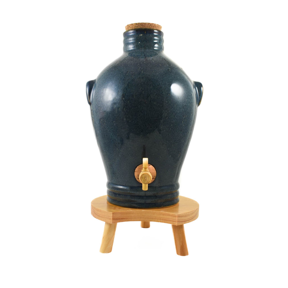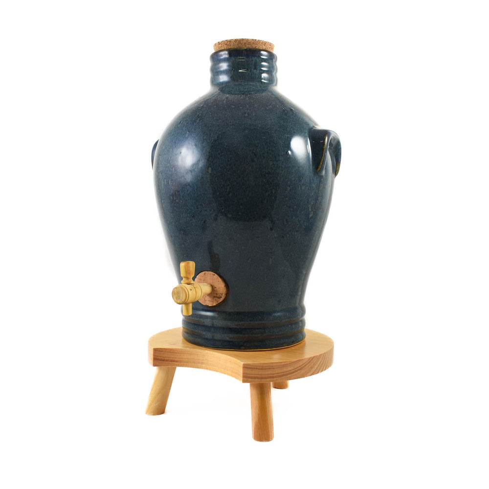 The hand-glazed traditional ‘amphora’ style vinaigrier echoes those that have been used all around the Mediterranean for hundreds of years. The curved section in the wooden stand makes it easy to fit a bottle, jar or cup under the tap.