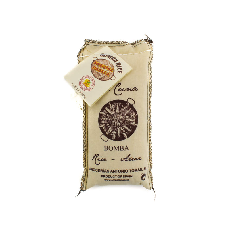 Bomba rice is a short-grained variety of rice, grown in eastern Spain. It is one of the most sought-after rice varieties for paella because of its superior quality and absorption properties. The rice grains are highly absorbent, taking in up to three times its dry weight – which makes beautiful creamy, loose-textured risotto. Meanwhile, Bomba rice retains its shape very well during cooking and does not fall apart.