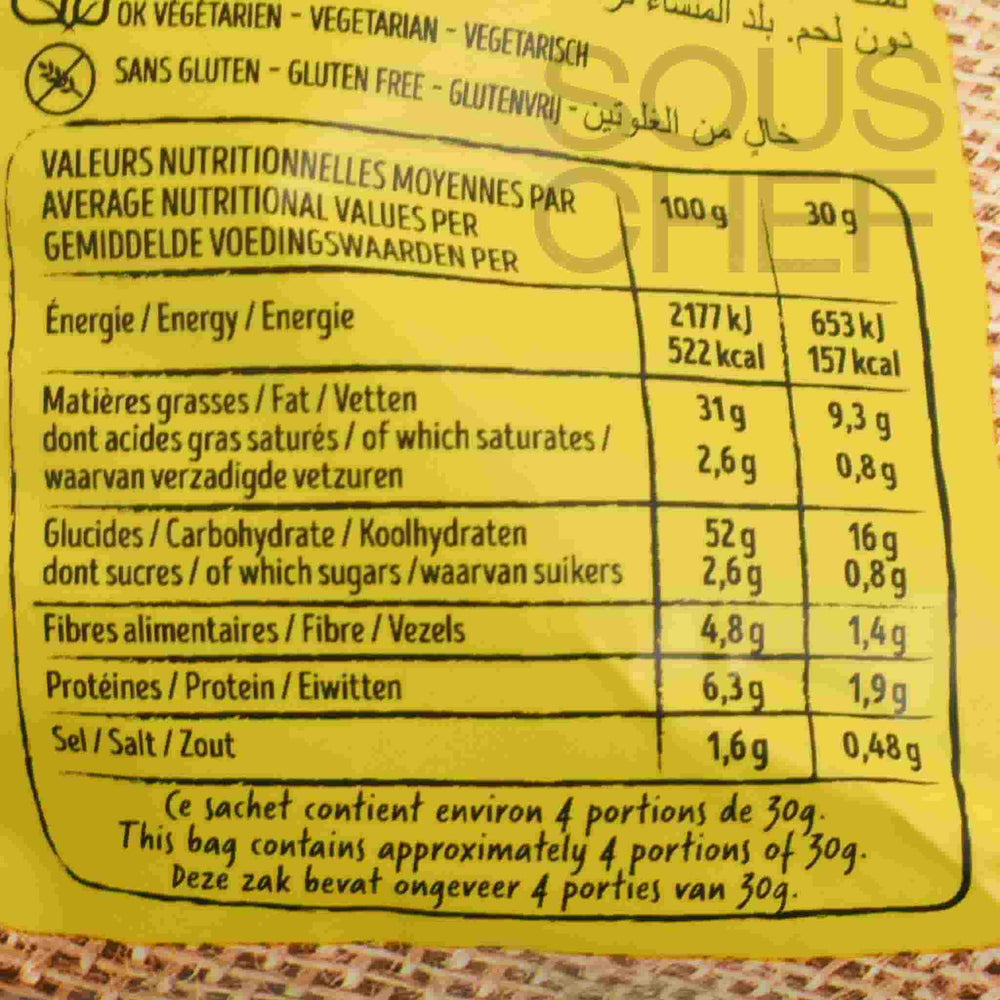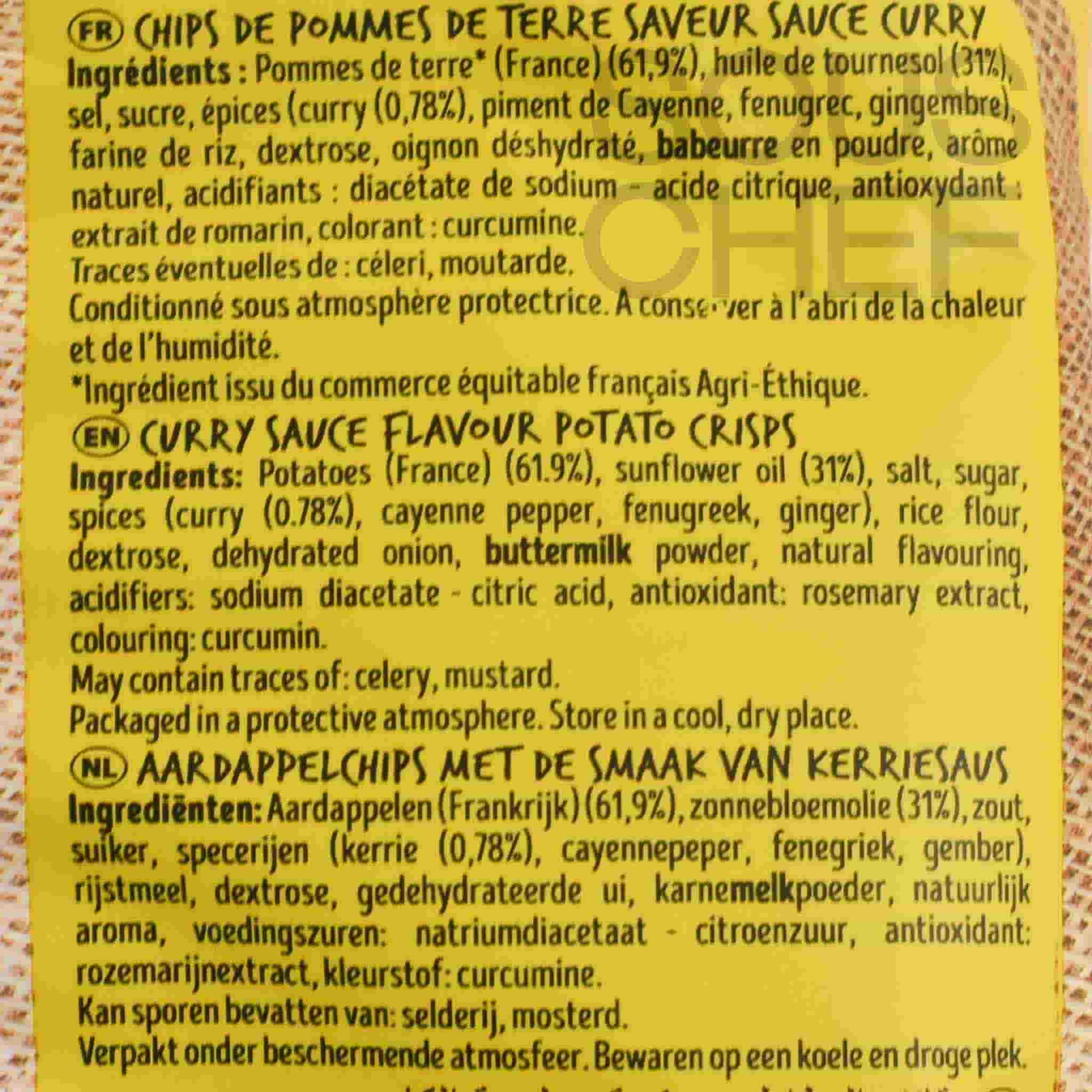 Product formulations and details may change. For the latest ingredients and allergen information always check product packaging prior to consumption. Ingredients: Potatoes (france) (61.9%), sunflower oil (31%), salt, sugar, spices (curry (0.78%), cayenne pepper, fenugreek, ginger), rice flour, dextrose, dehydrated onion, buttermilk powder (milk), natural flavouring, acidifiers: sodium diacete – citric acid, antioxidant: rosemary extract, colouring: curcumin.