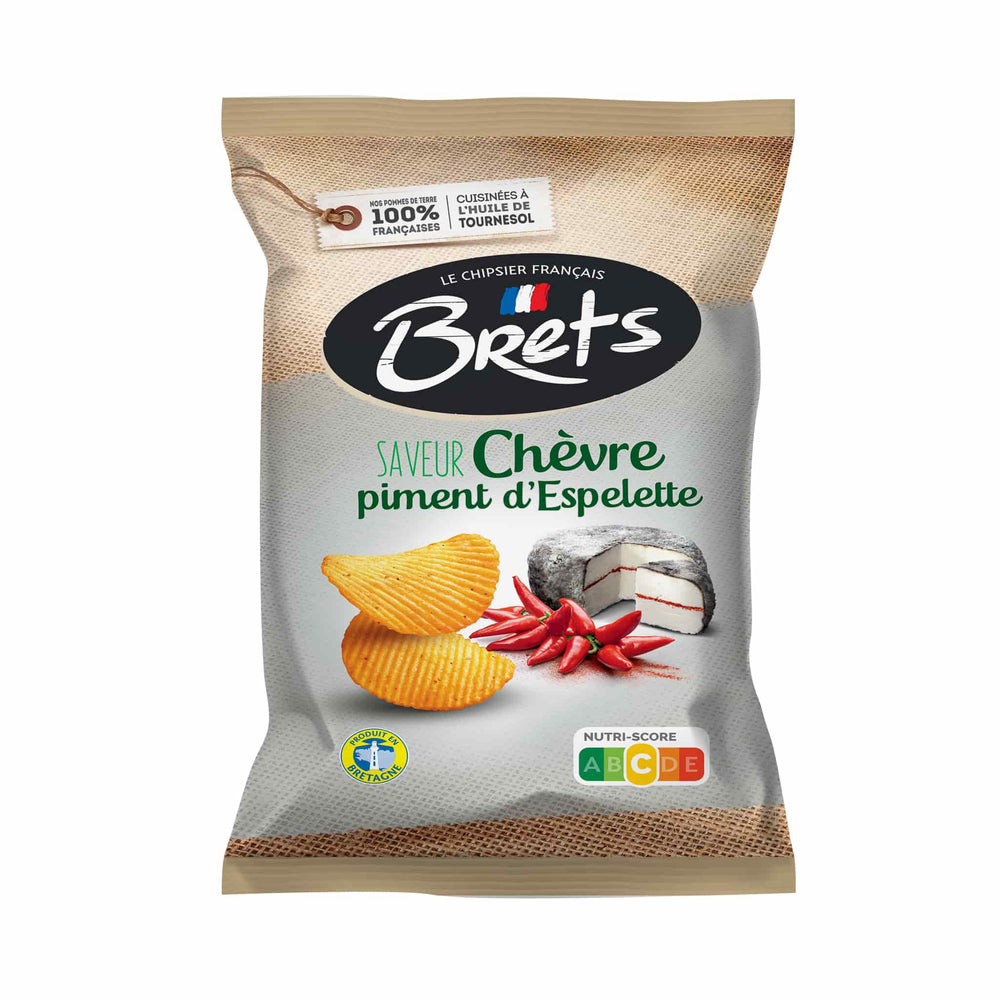 The ridged crisps are fried in sunflower oil until they’re crunchy and golden. They’re flavoured with goat’s cheese for a unique and sophisticated taste. Espelette pepper has a mild, fruity heat that pairs beautifully with creamy goat’s cheese.