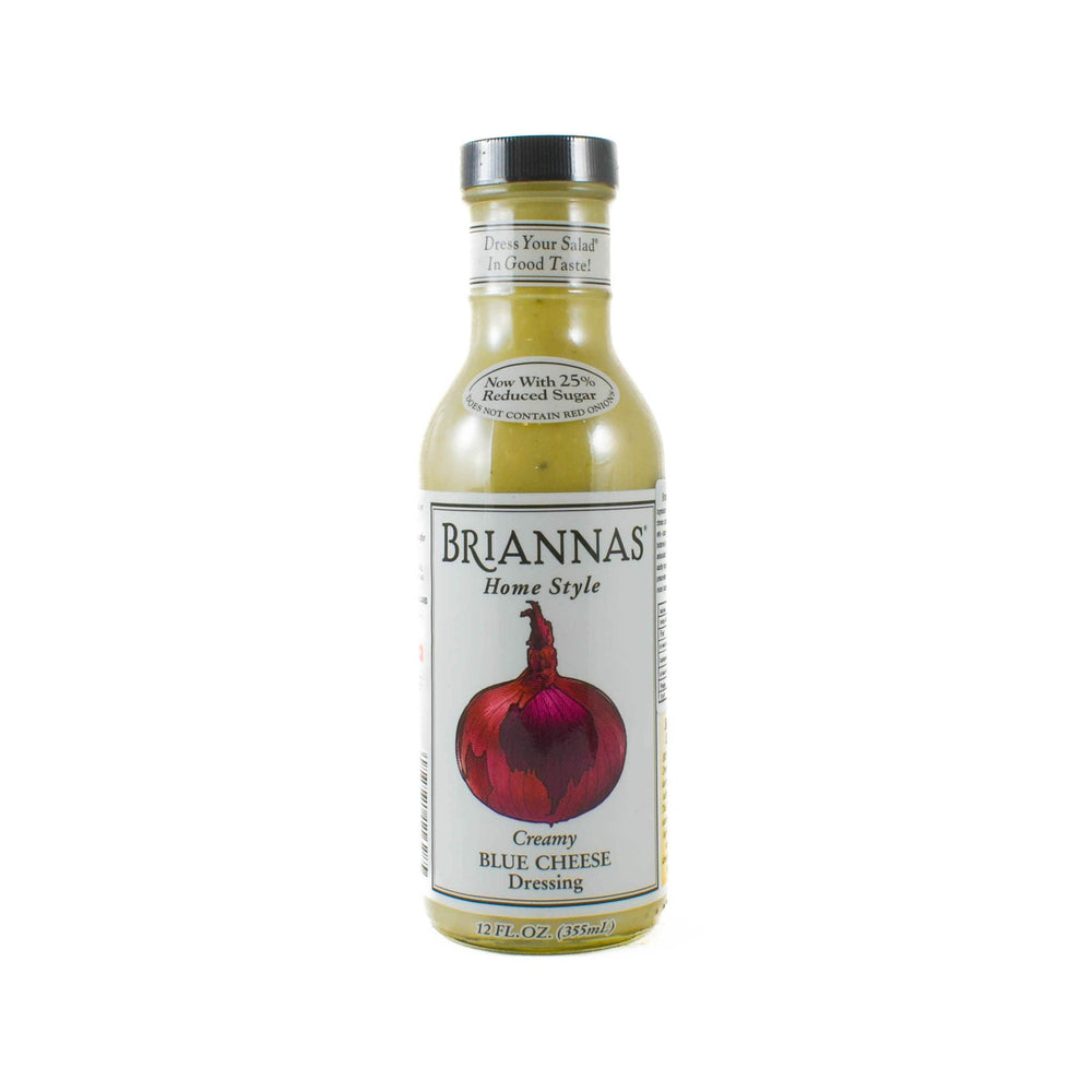 Briannas blue cheese dressing is a thick and creamy dressing for chopped green salads. It’s made from all-natural ingredients and contains pieces of sharp, salty blue cheese. Use it to dress iceberg wedges sprinkled with bacon bits or as a dip for chicken wings smothered in hot sauce.