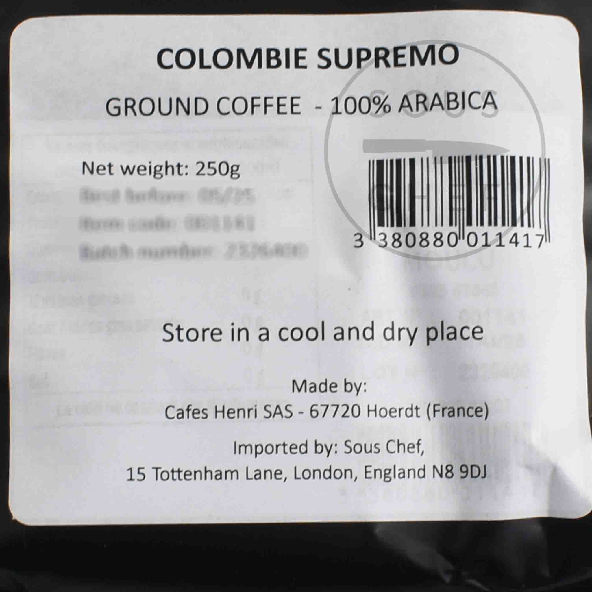 Cafes Henri Colombia Supremo Ground Coffee, 250g