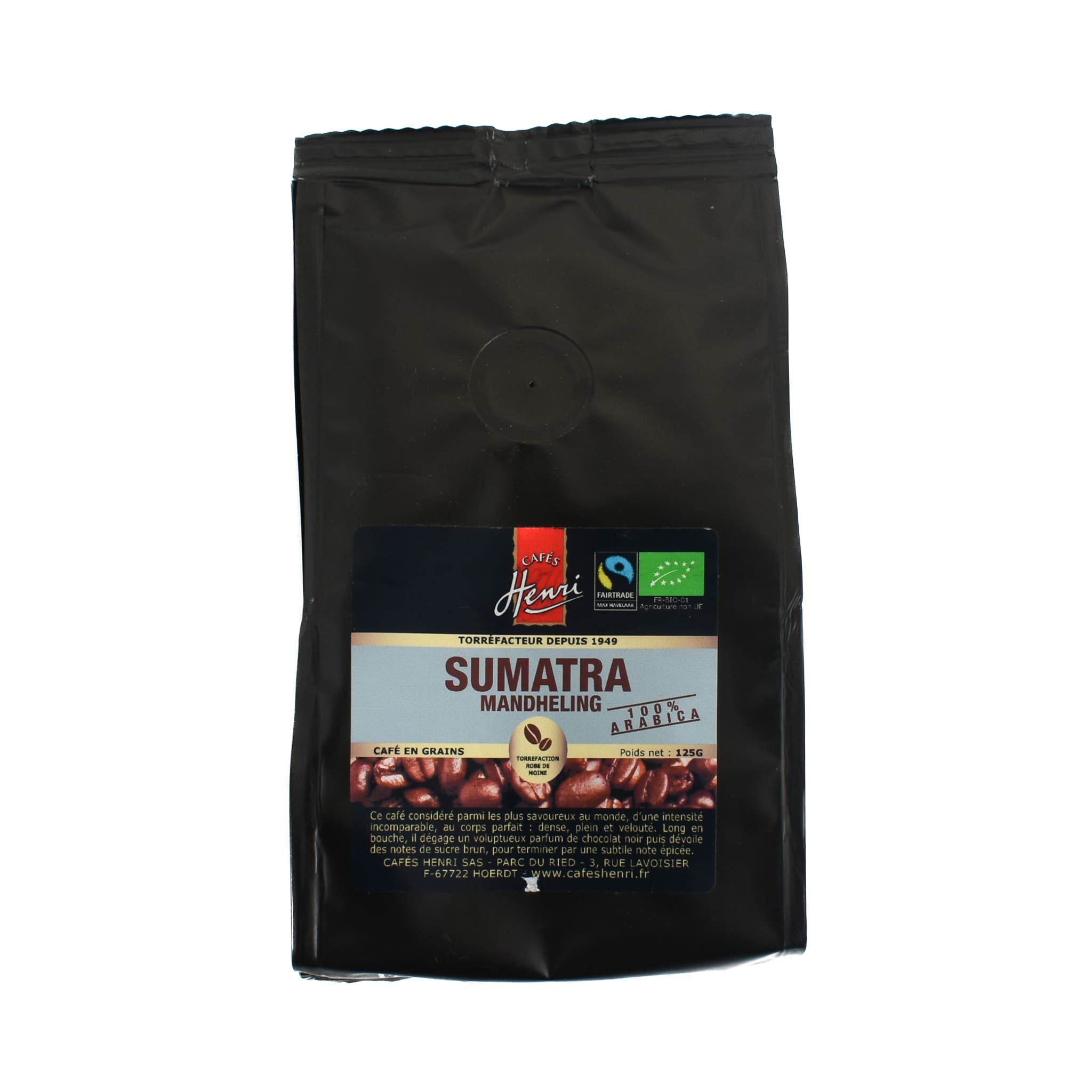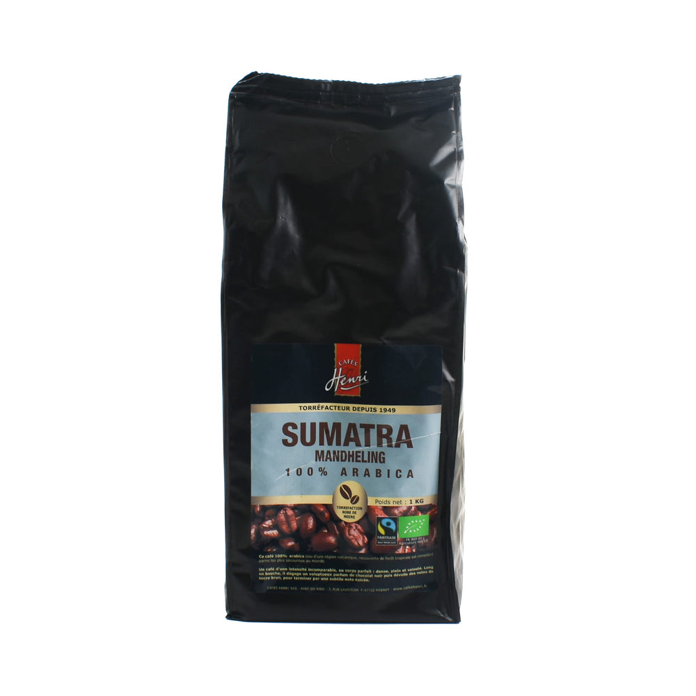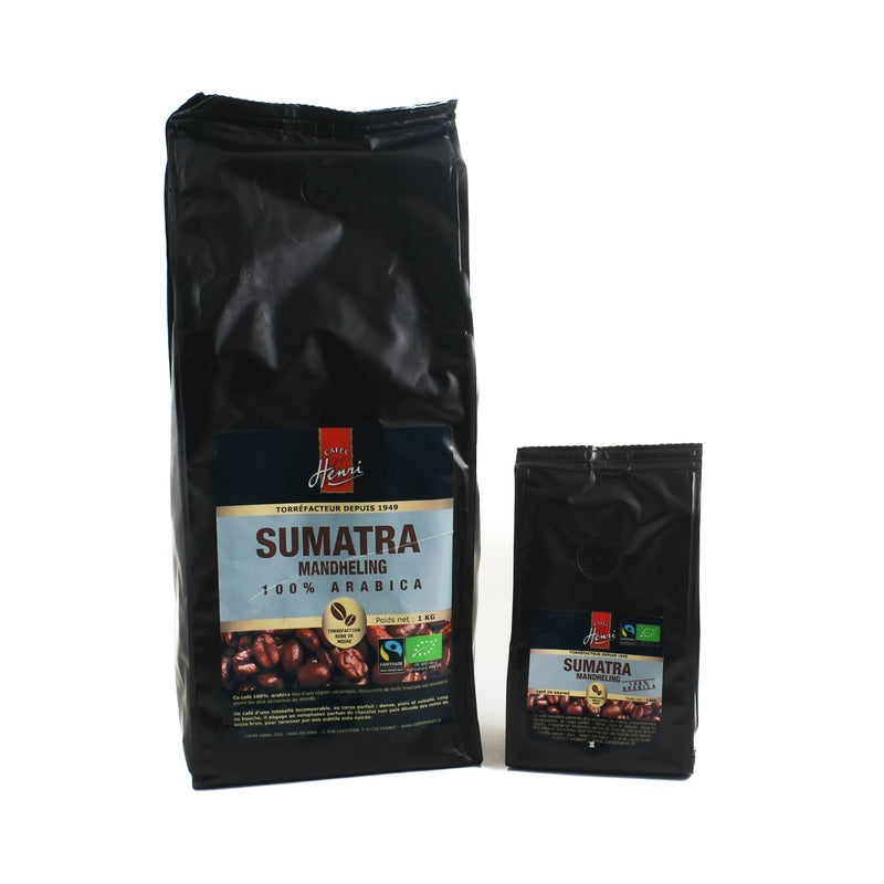 Sumatra Mandheling organic coffee beans are grown on the Indonesian island of Sumatra. They are roasted using traditional methods by Cafés Henri.