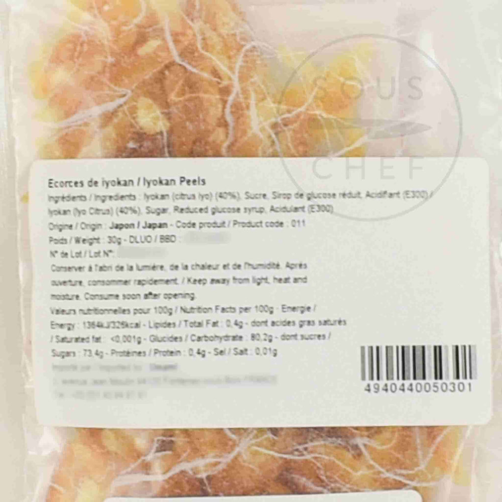 Enjoy candied iyokan peel straight from the bag, or use it as a garnish. Japanese iyokan oranges are similar in size to tangerines and have a sharp-sweetness. The flavour is between a grapefruit, orange and yuzu fruit.