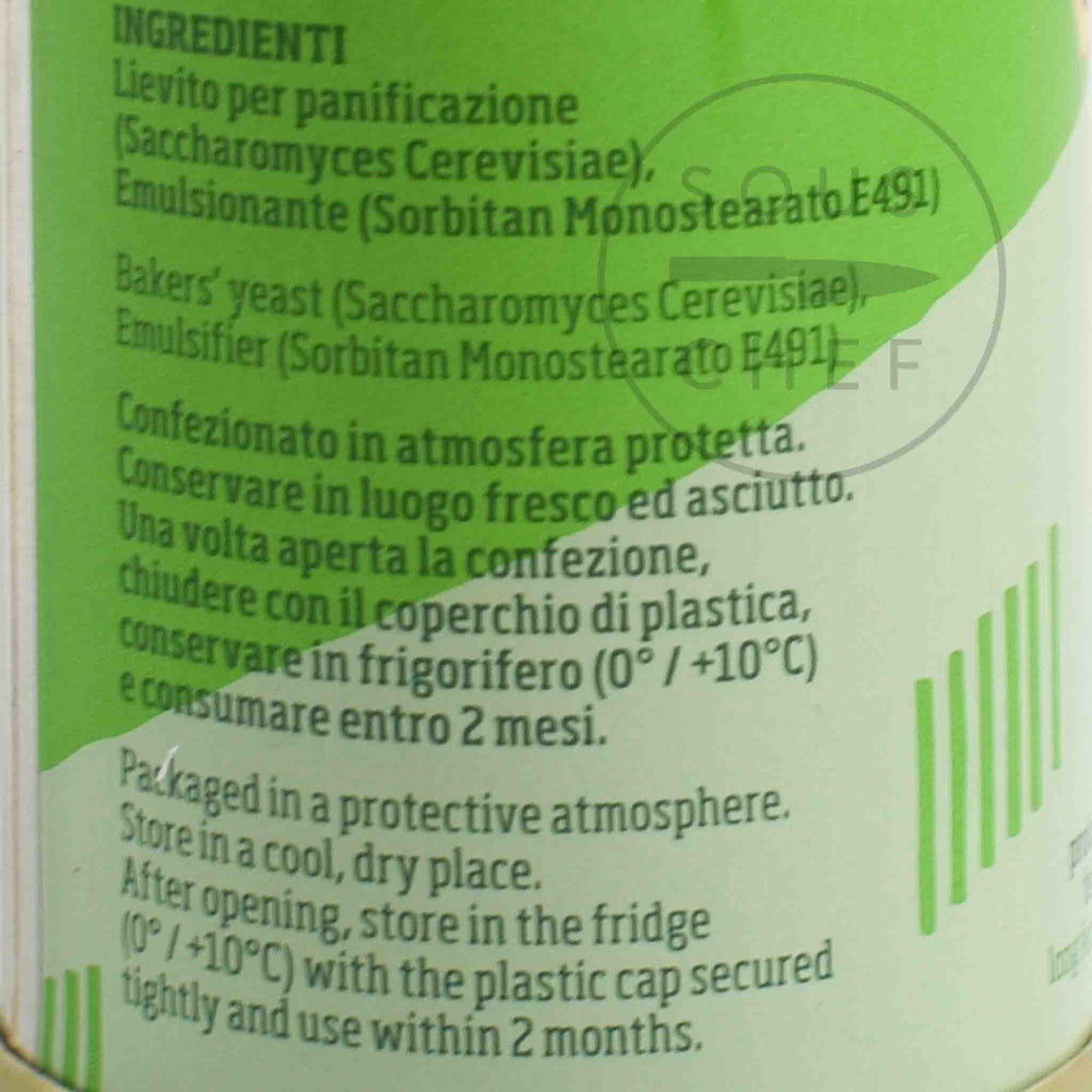 This dry yeast is crafted from 100% Italian Saccharomyces Cerevisiae, sourced from Italian molasses. It has a high fermentative power that’s perfect for soft doughs.