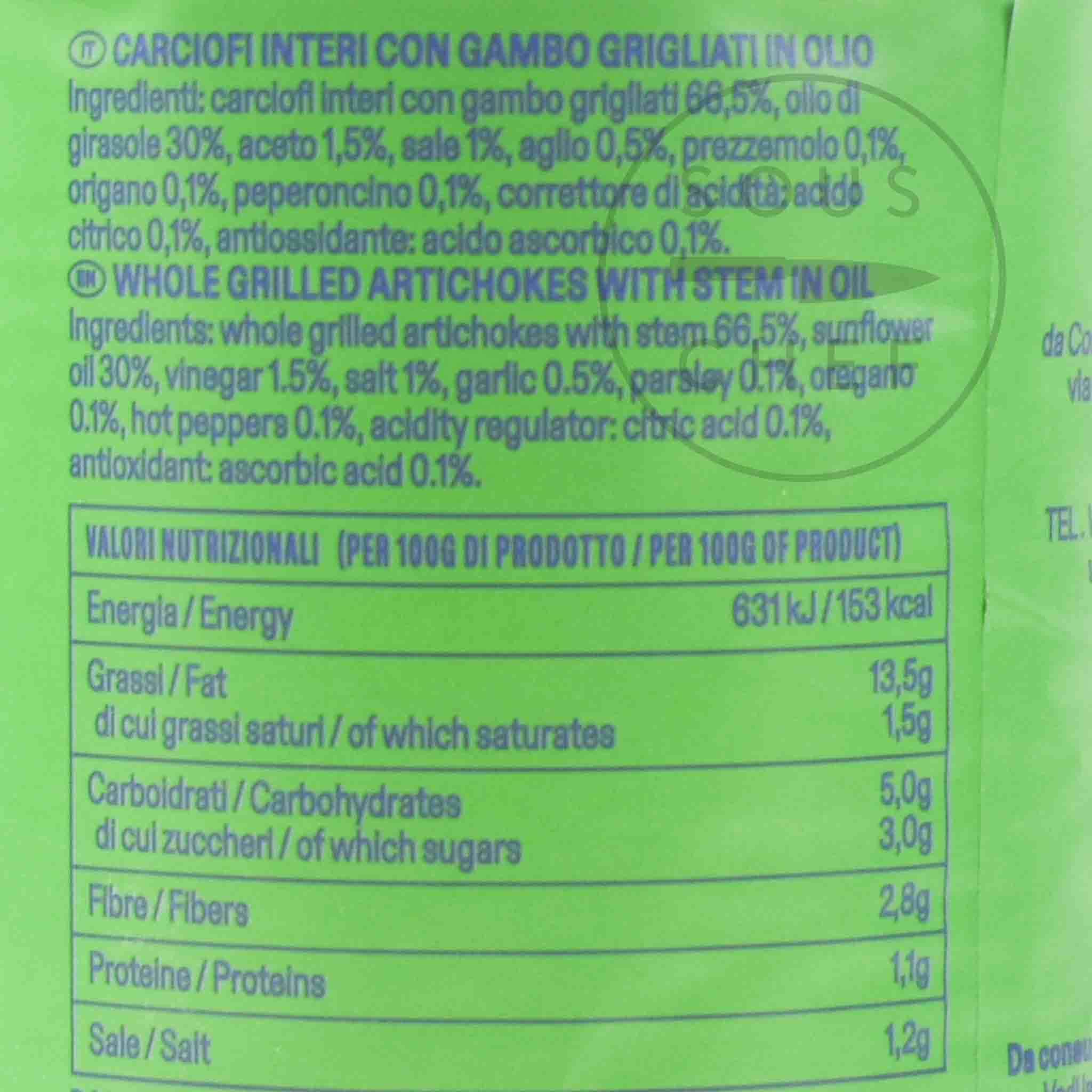 Product formulations and details may change. For the latest ingredients and allergen information always check product packaging prior to consumption. Ingredients: Artichokes, sunflower oil, vinegar, salt, garlic, parsley, oregano, hot pepper, acidity regulator: citric acid; antioxidant: ascorbic acid.