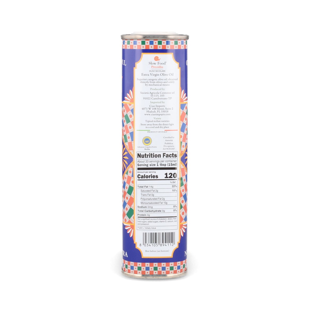 Centonze PGI Sicilian Extra Virgin Olive Oil in Tin, 500ml