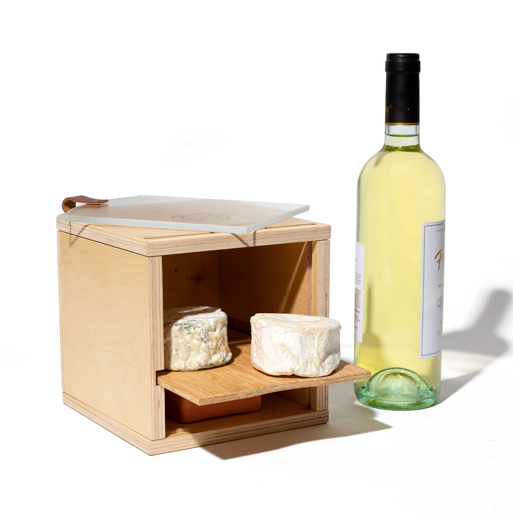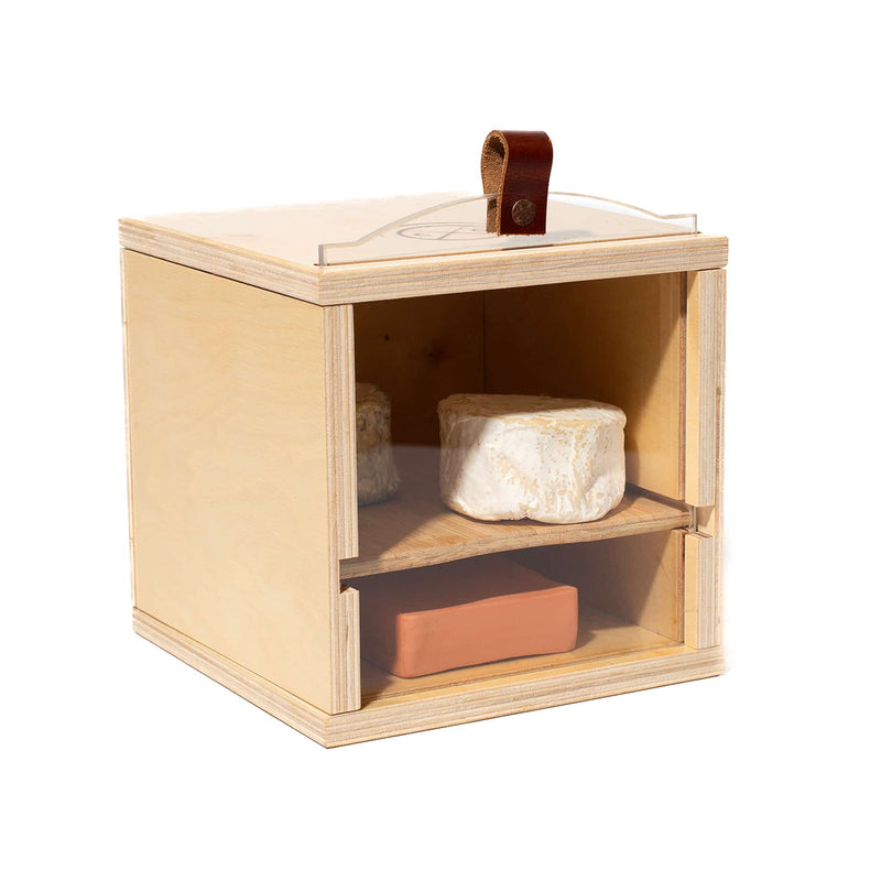 The Cheese Grotto is made from sustainable birchwood. Inside, there’s a bamboo shelf and a clay brick for humidity control. It can store around 450g of cheese. The back panel is breathable, creating the perfect climate for long-term storage.