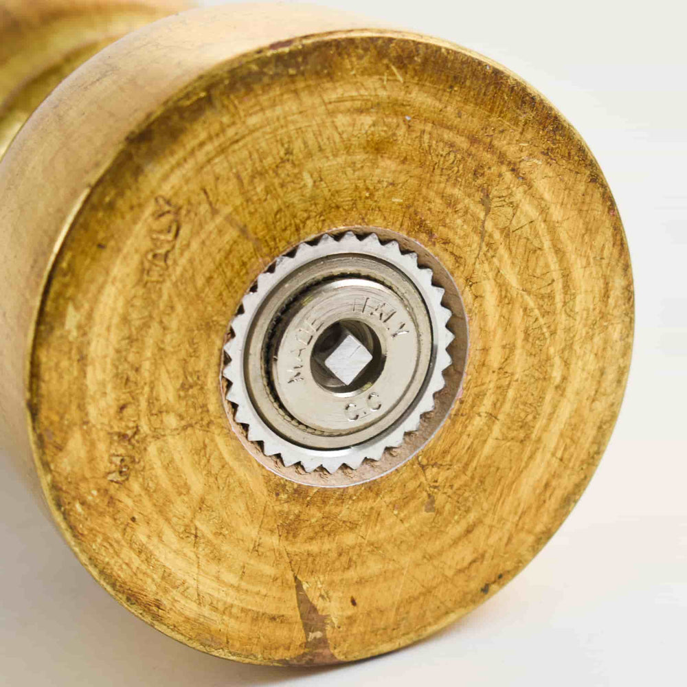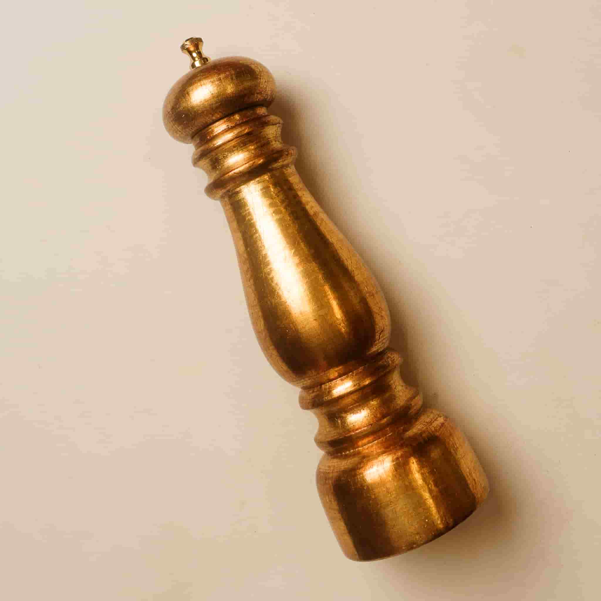 The mill is made from top quality beech wood, covered in gold leaf. It catches the light beautifully, casting golden shadows across your table. The delicate gold leaf is applied by hand in a process that takes several hours. As the mills are made by hand, potential minor imperfections may occur, these won’t have any effect on the use of the mills. This means that each one is unique to you.