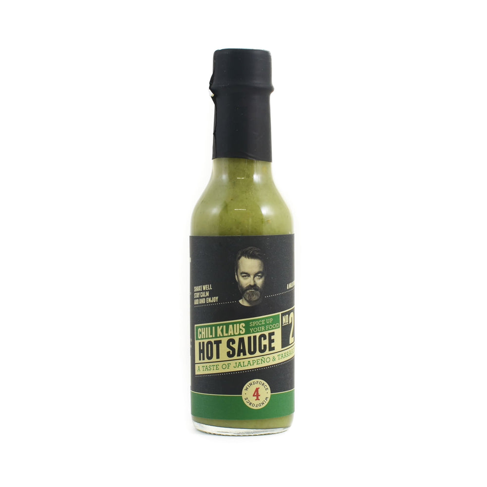 Chili Klaus Nº2 hot sauce has a gentle kick from jalapeño chillies. It’s great for adding subtle spice to marinades and seafood dishes. Green apple and tarragon give it a fresh, clean taste with notes of anise.