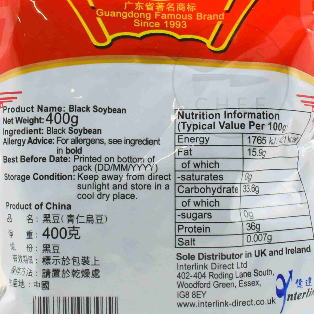 These Chinese black beans can be boiled until soft to make Chinese black bean soup which works well with pork ribs. The beans are also used to make Chinese fermented black beans - a staple in Chinese cookery which bring intense, salty flavours to dishes. To make fermented beans soak the dried beans in water, steam them until soft and then preserve in salt, spices and ginger until dry.