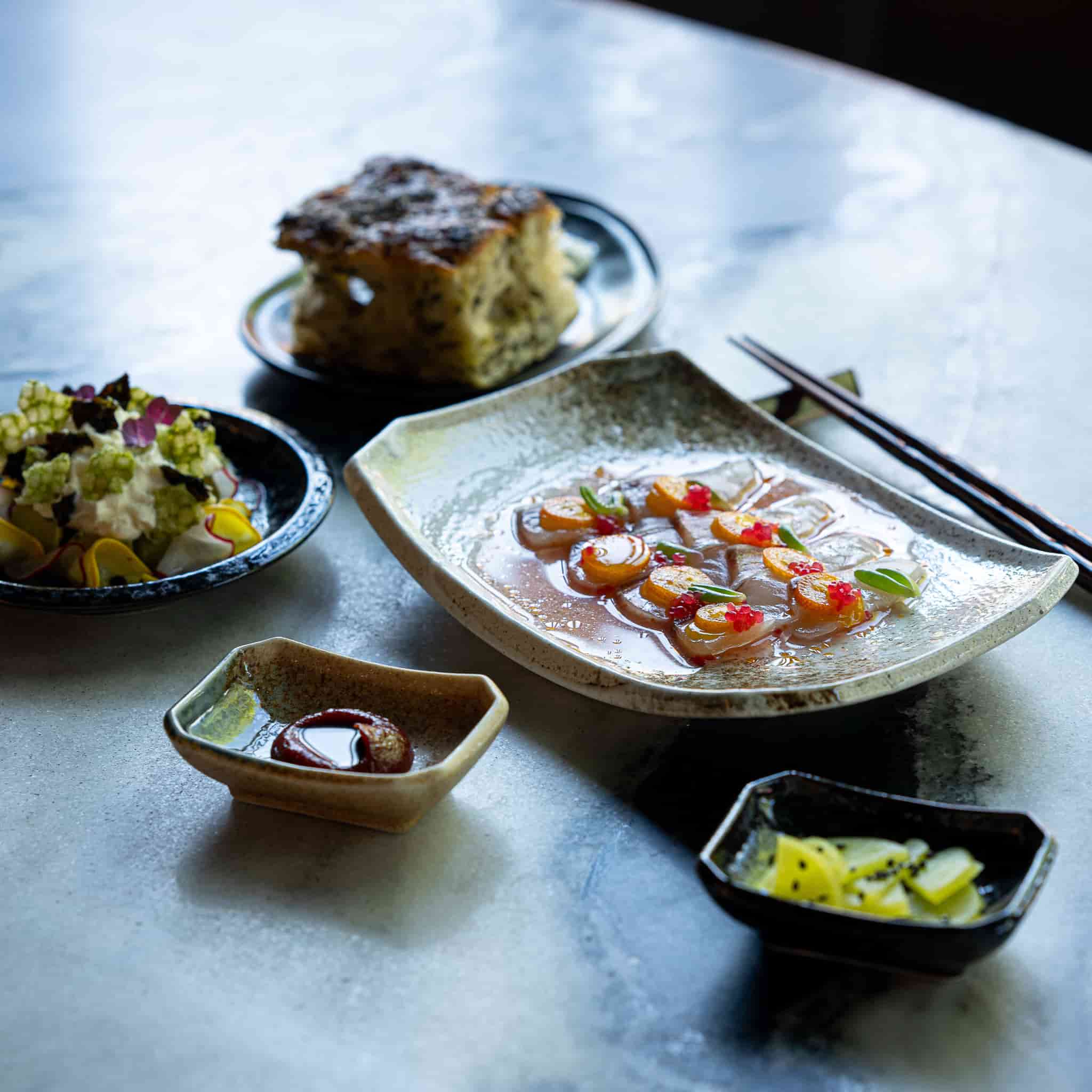 Chouseki blue gold bowls and plates are also available.