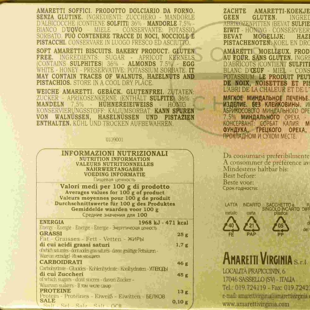 Founded in 1860, Amaretti Virginia is famous for its superb Italian biscuits and confectionery. Their amaretti biscuits are renowned for their soft texture and alluring almond aroma. The bakery that once produced the amaretti became so popular that the square it overlooked was referred to as 'Piazza degli Amaretti Virginia' in postcards of the time. Amaretti Virginia now produces a wide range of Italian treats in sweet and fruity flavours. They make wonderful gifts for friends and family.