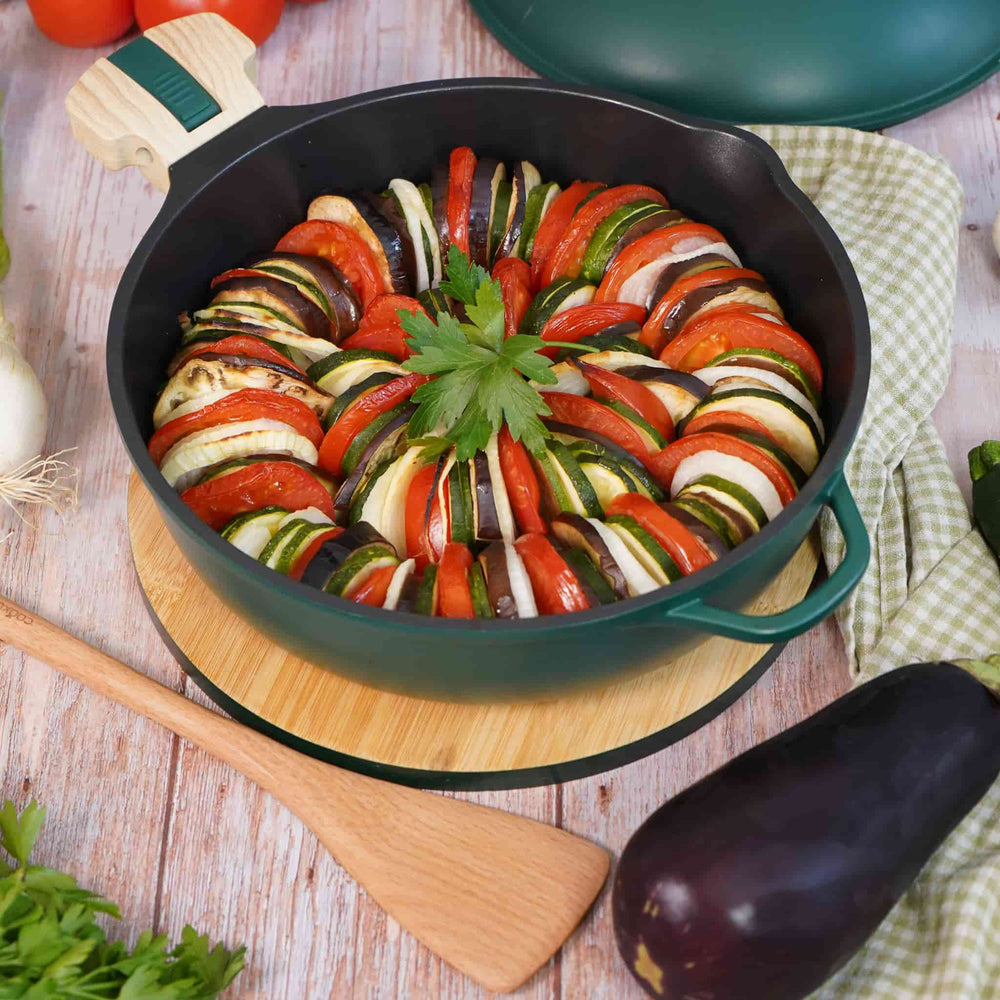 Use Cookut’s green fabulous 8-in-1 pan to stir-fry vegetables, sear a steak or simmer a rich tomato sauce. Made from natural materials, this eco-friendly pan is lightweight but sturdy enough for everyday use.