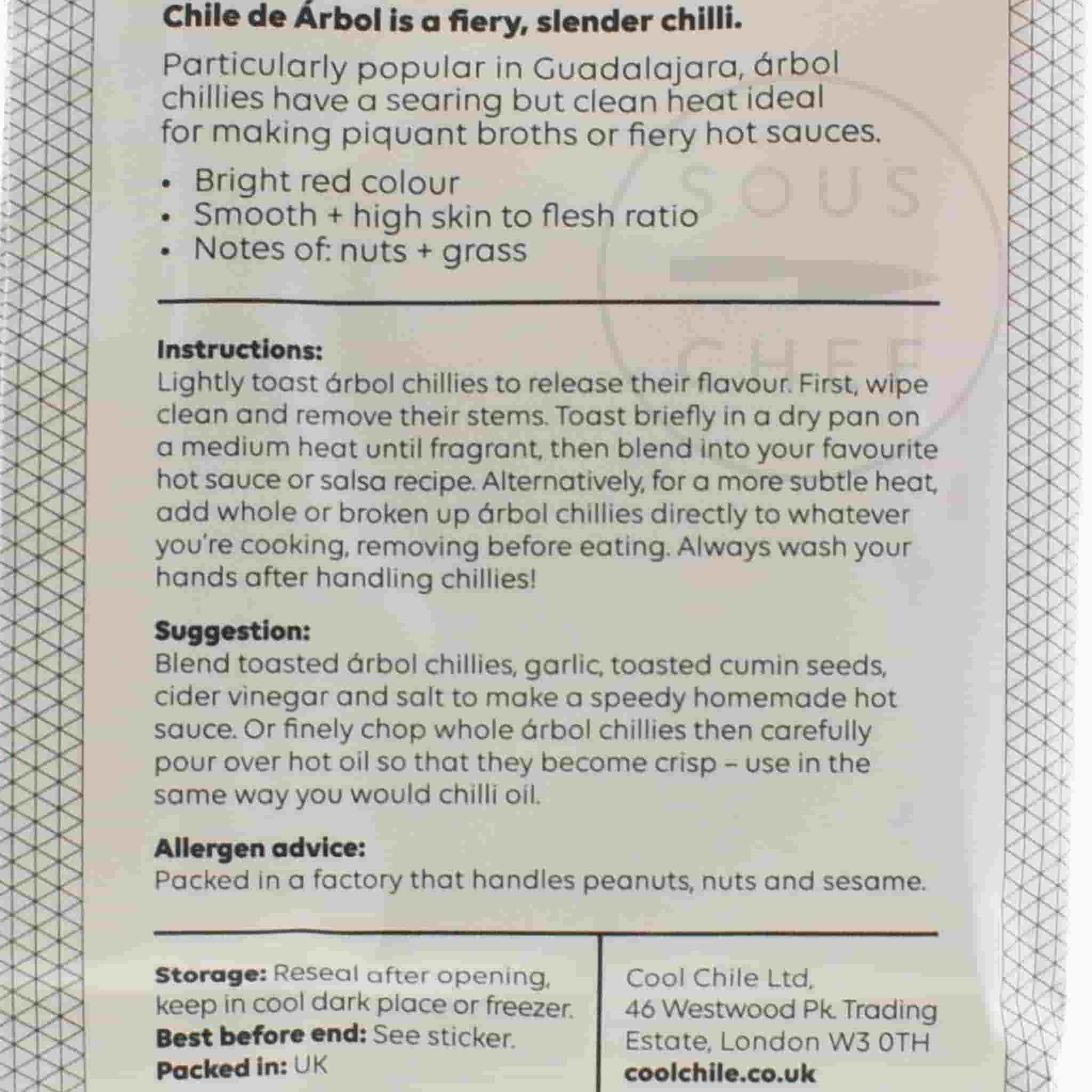 Product formulations and details may change. For the latest ingredients and allergen information always check product packaging prior to consumption. Ingredients: Whole dried arbol chilli