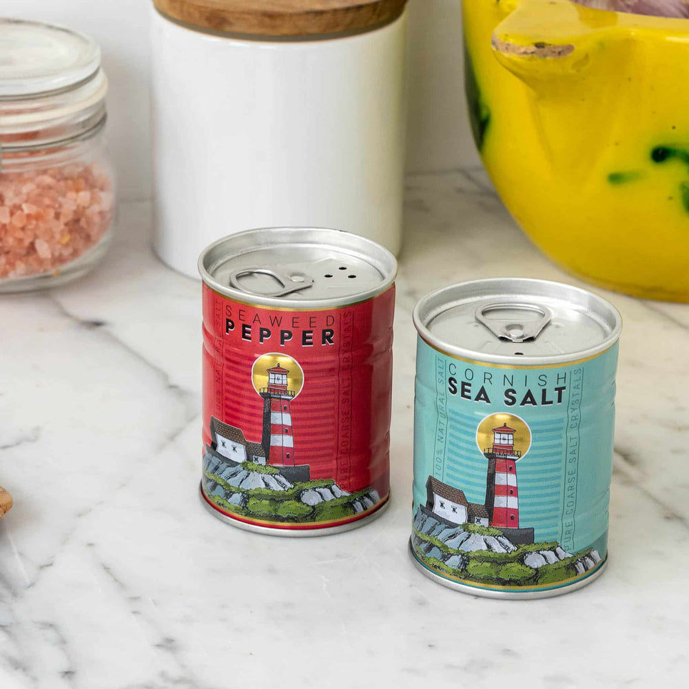 These Cornish salt and pepper shakers will transport you to the beautiful English coastline. Perfect for food lovers and anyone who loves to travel, the metal shakers are inspired by vintage food packaging. The red and blue tins feature a lighthouse design on the front and a seaweed and salt bowl design on the back. Keep them on your table to season grilled fish and chunky chips.