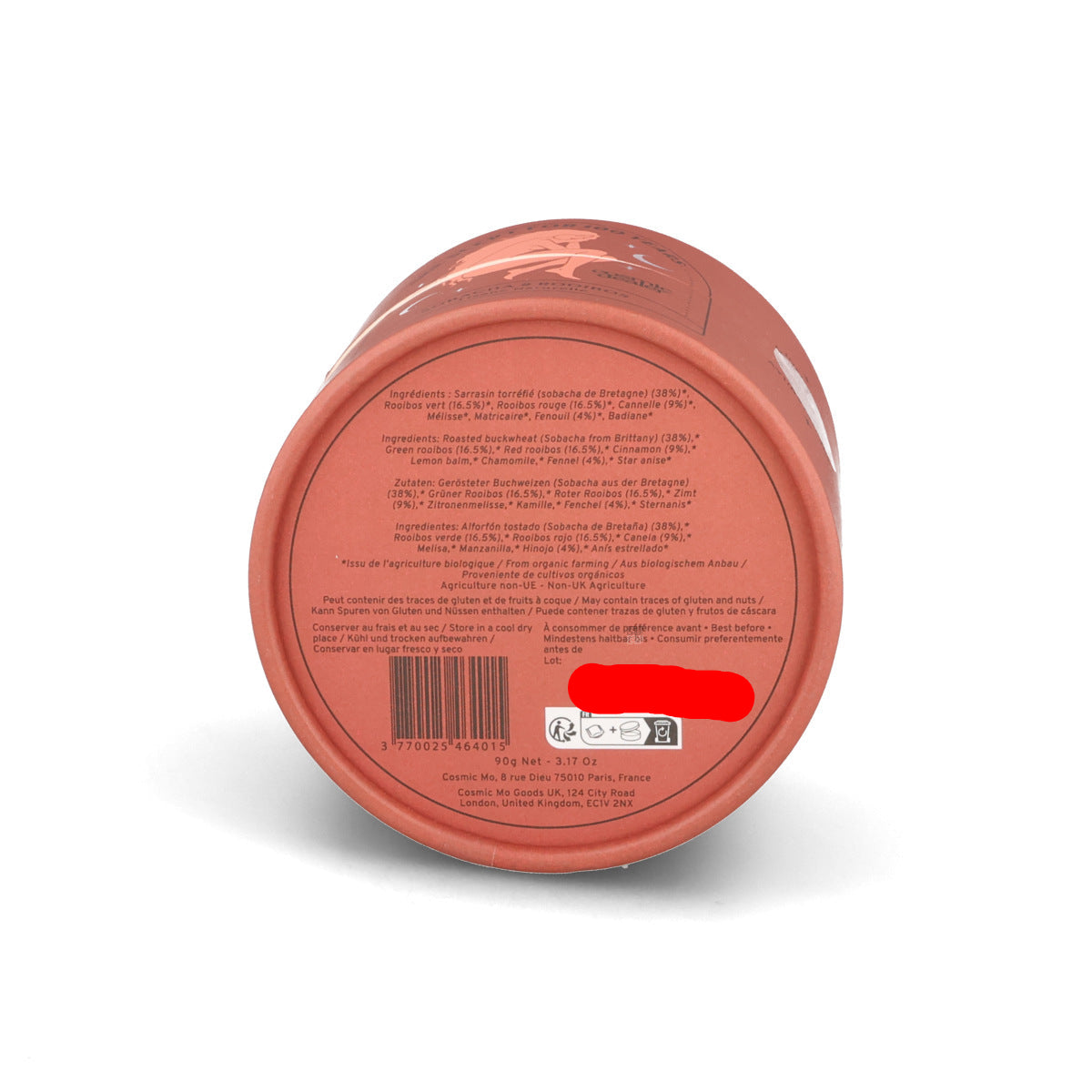 Product formulations and details may change. For the latest ingredients and allergen information always check product packaging prior to consumption. Ingredients: Roasted buckwheat*, green rooibos*, red rooibos*, cinnamon*, star anise*, fennel fruit*, wild chamomile*, lemon balm* * from organic farming