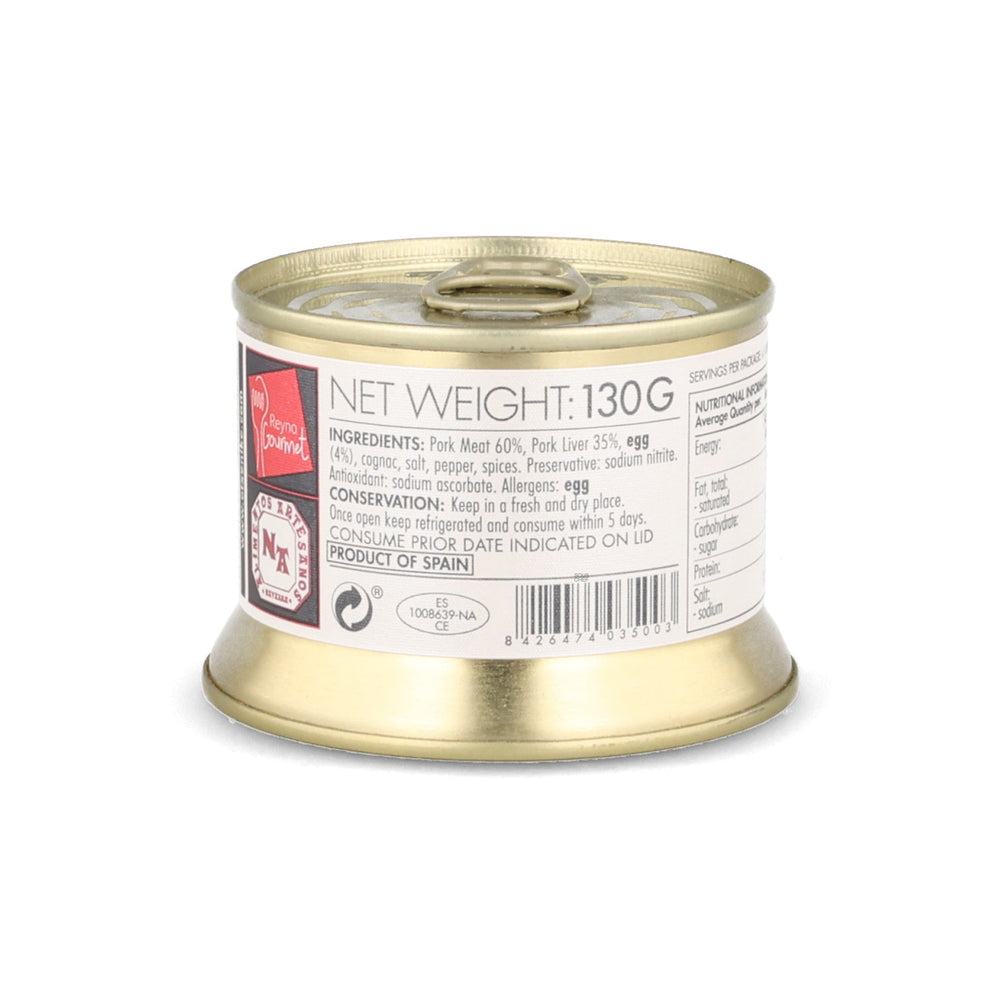 This country pork pâté is made in northern Spain. Seasoned with pepper and spices, it has a rich and complex flavour. A splash of cognac adds warmth and a hint of sweetness.