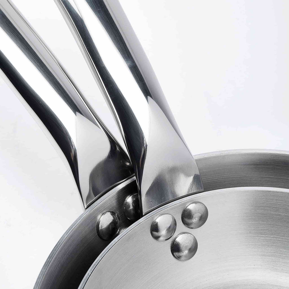 Two layers of stainless steel sandwich an aluminium core, giving you the aesthetics of a traditional pan combined with extraordinary heat control. The pans are reactive and reliable, whether you’re searing meat or toasting a grilled cheese sandwich. Plus, the great conductivity means your pan uses less energy as it heats up.
