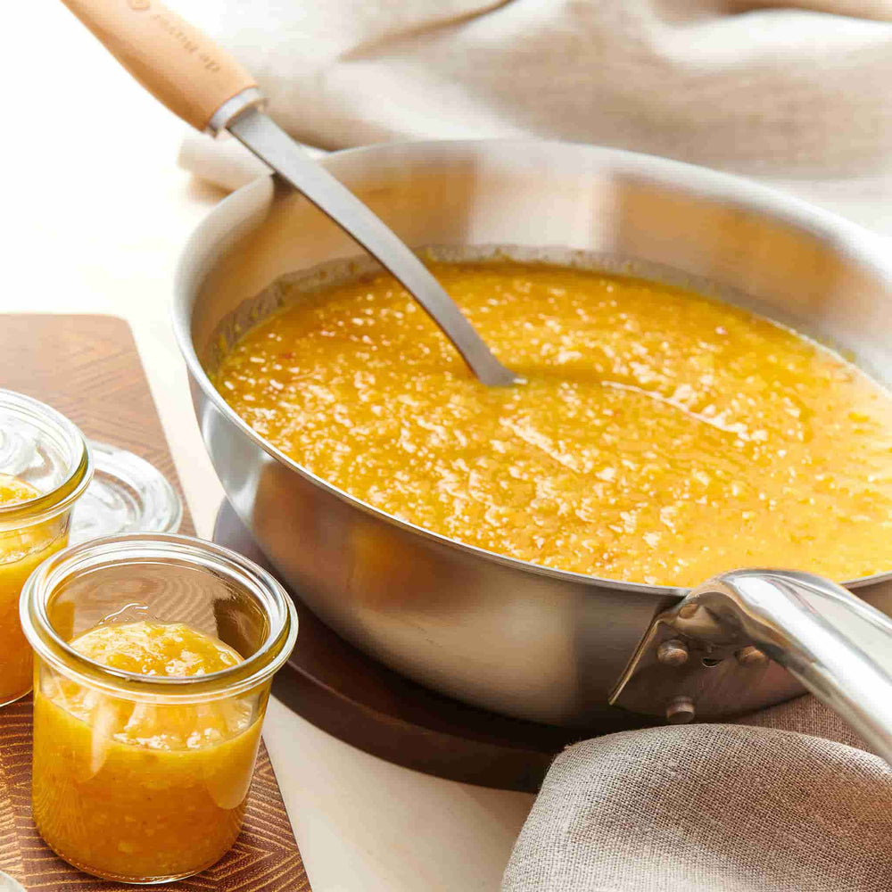 De Buyer’s Alchimy saute pan combines centuries of kitchen expertise with cutting edge engineering - a fabulous pan for induction, and all other stovetops. Created with chefs in mind, the triple-layer design guarantees fast, even heat distribution and total control. De Buyer launched the Alchimy range in 2021 to mark their partnership with the Bocuse D’Or – the world’s most prestigious culinary competition.