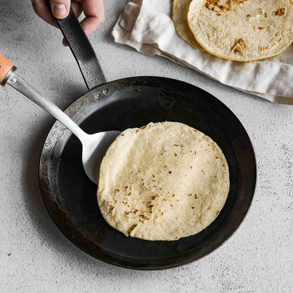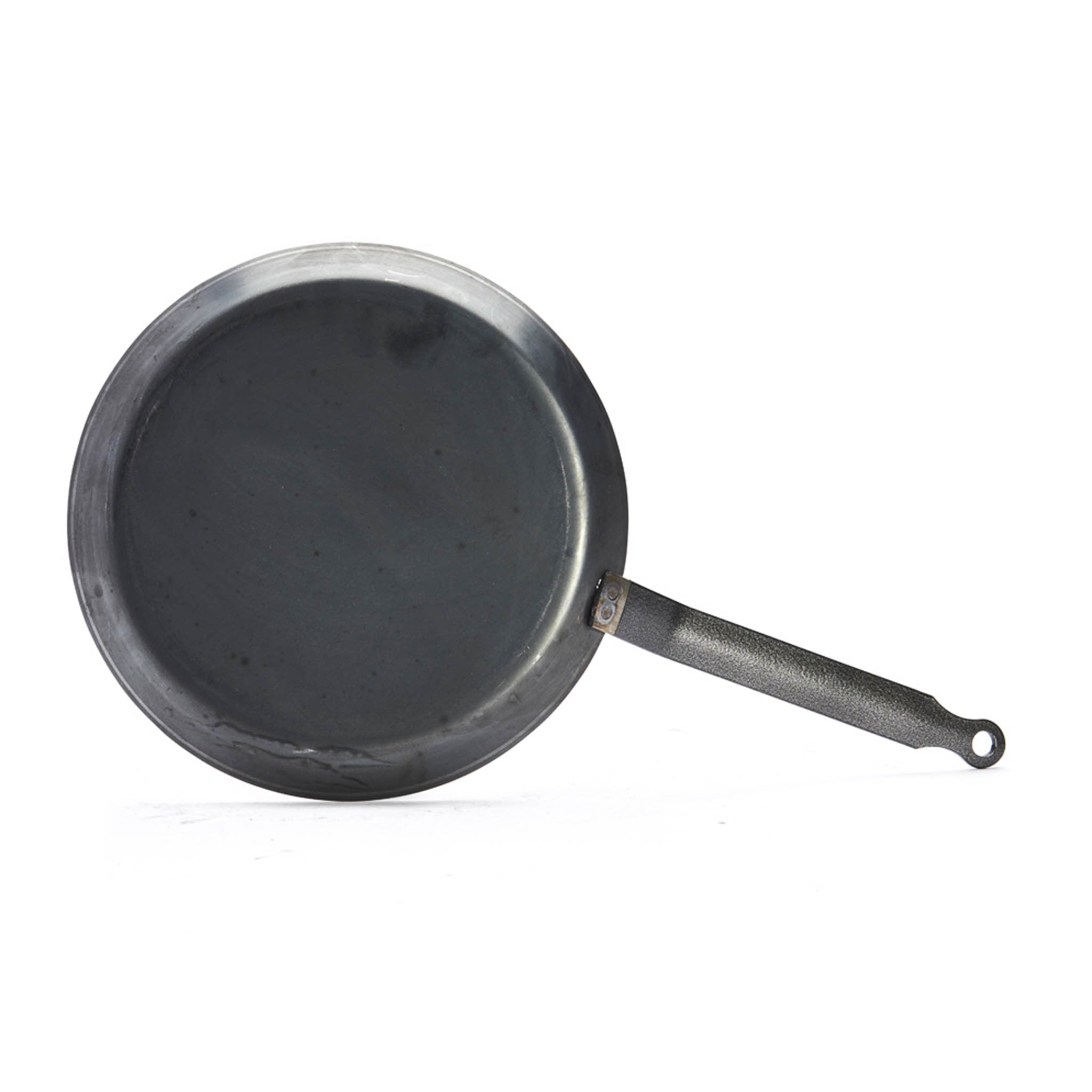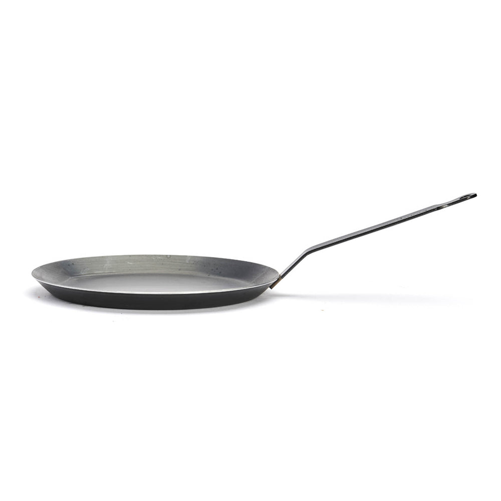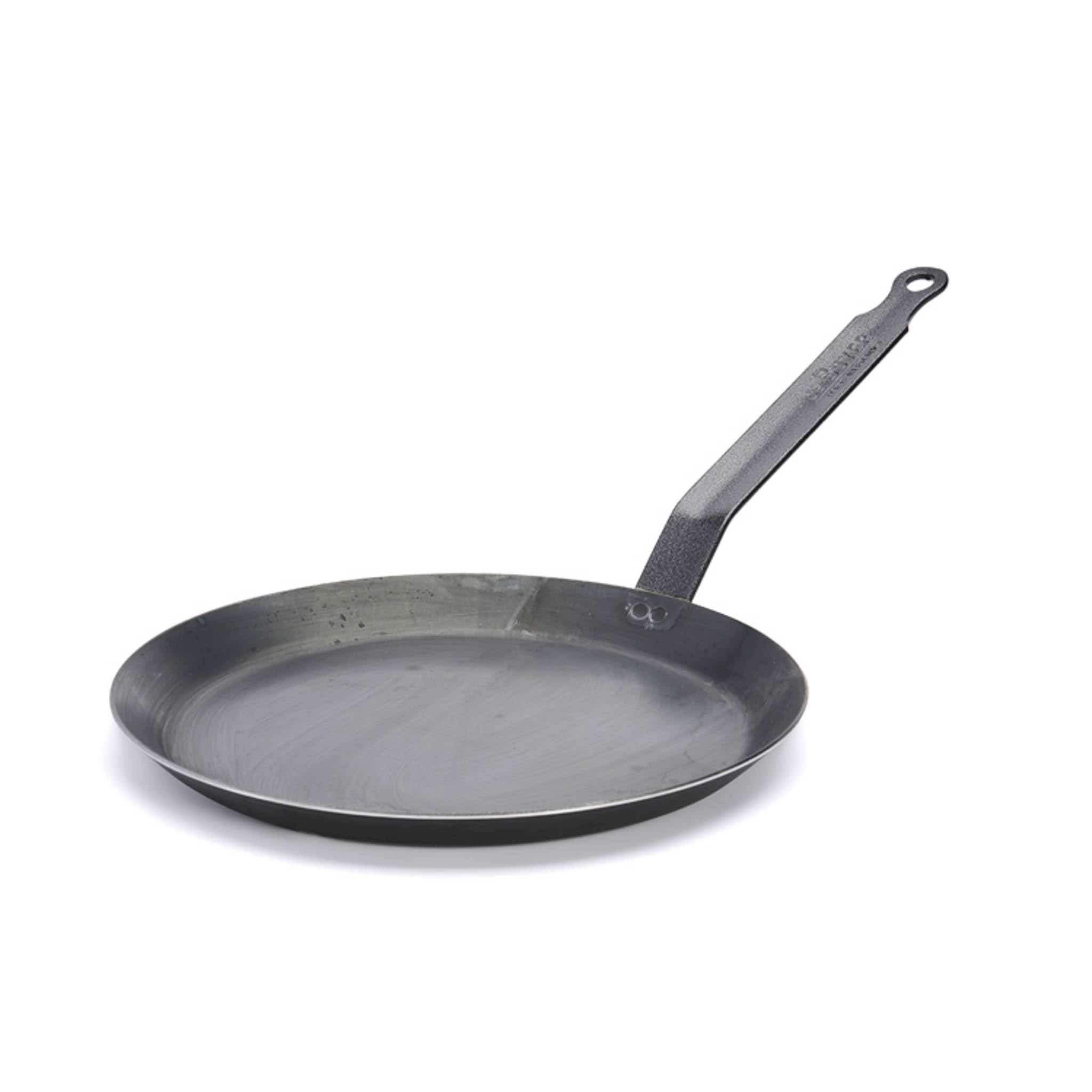 De Buyer’s Blue Steel crêpe pan is made with cooking over gas in mind, but is also suitable on all other cooking surfaces, except for induction. For best results, preheat the pan using a little fat. As well as pancakes, you can also use the pan to make omelettes, quesadillas and grilled cheese sandwiches.