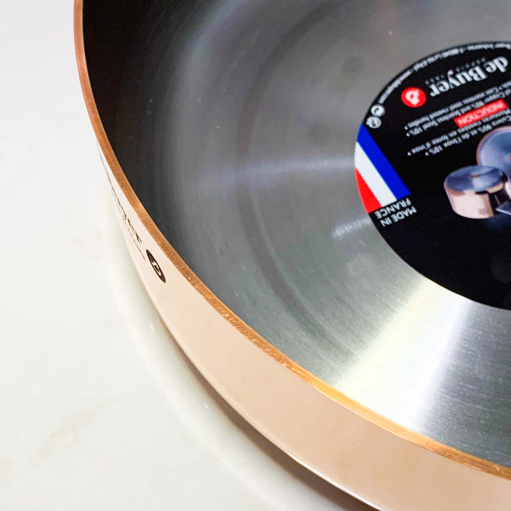 - No more re-tinning! Traditionally copper pans are lined with tin which wears away over time, so you would need to send your pan away to be 're-tinned'. Instead, De Buyer use a very thin coating of stainless steel which is durable, will last, and is easy to clean.